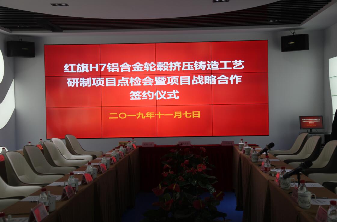 各位嘉賓參觀考察完蘇州三基的生產(chǎn)現(xiàn)場之后,來到新建研發(fā)大樓的會議室參加主題活動“紅旗H7擠壓鑄造鋁合金汽車輪轂研制項目點檢會暨項目戰(zhàn)略合作簽約儀式”。
