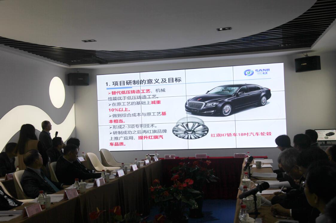 會議第一個議程,蘇州三基代表匯報了紅旗H7擠壓鑄造鋁合金汽車輪轂的試制情況,總結(jié)了汽車輪轂?zāi)壳把兄扑〉玫碾A段性成果、存在的問題以及下一步的對策。