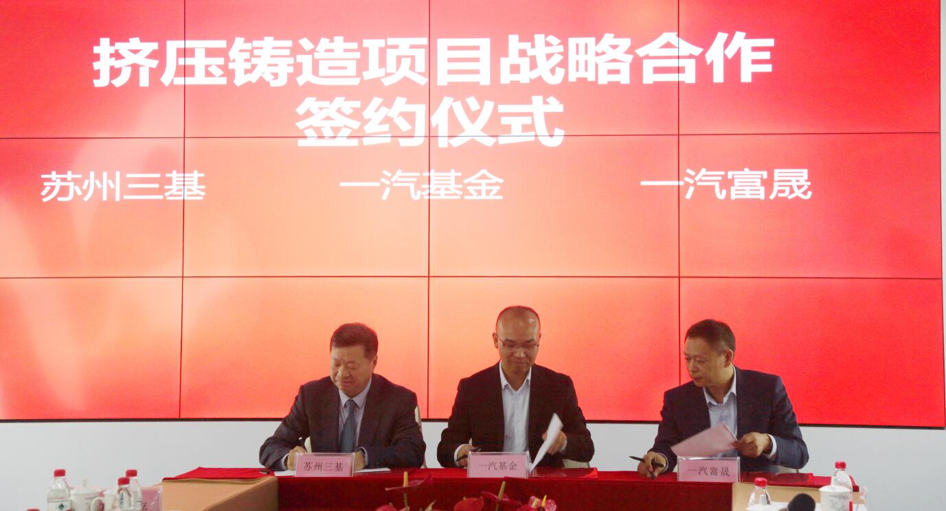 會議第三個議程,一汽基金、蘇州三基、一汽富晟等三家單位針對擠壓鑄造業(yè)務(wù)簽訂了擠壓鑄造項目戰(zhàn)略合作協(xié)議,未來將圍繞擠壓鑄造業(yè)務(wù)合作設(shè)立新公司,共同開拓擠壓鑄造汽車零部件業(yè)務(wù),目標(biāo)重點針對紅旗品牌汽車零部件業(yè)務(wù)。