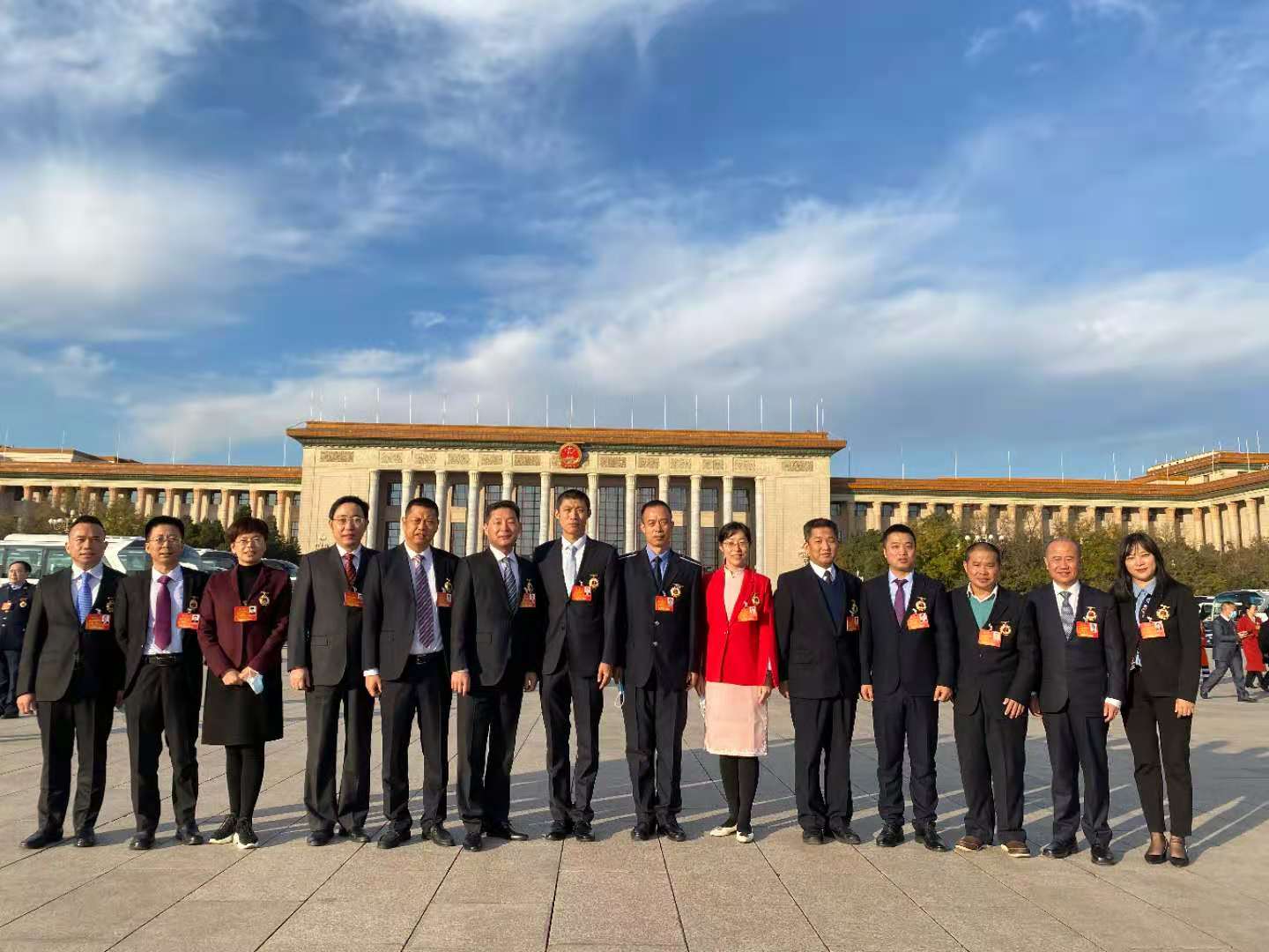 各位勞模代表在人民大會堂前合影(右3位為三基鑄裝施永祥師傅)