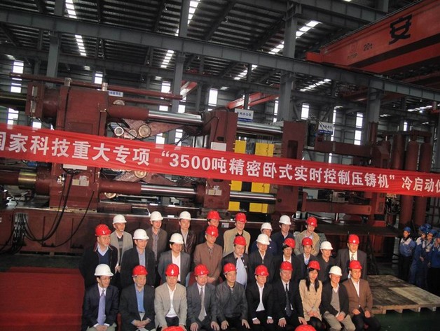 由一汽鑄造有限公司牽頭,蘇州三基鑄造裝備股份有限公司、清華大學(xué)、西安交通大學(xué)、機械科學(xué)研究總院聯(lián)合承擔的“高檔數(shù)控機床與基礎(chǔ)制造裝備”科技重大專項“3500噸精密臥式實時控制壓鑄機及成套設(shè)備”項目,經(jīng)過各責(zé)任單位近一年緊鑼密鼓的實施,主機制造已經(jīng)完成,標志著項目已經(jīng)取得了階段性成果。為了慶祝取得的階段性成功以及對中期的工作情況進行檢查,于2011年11月19日,在主機的研制基地蘇州三基鑄造裝備股份有限公司舉辦了“國家科技重大專項-3500噸精密臥式實時控制壓鑄機冷啟動儀式暨項目中期檢查匯報會”活動。