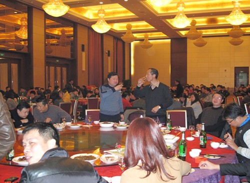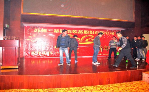 公司一年一度的全員盛會(huì)—新春團(tuán)拜會(huì)活動(dòng)于2012年1月17日在蘇州木瀆石家飯店舉行,活動(dòng)分為公司高管總結(jié)一年的工作、優(yōu)秀員工表彰、全體晚宴、文藝節(jié)目表演、抽獎(jiǎng)等幾個(gè)議程。員工積極參與、現(xiàn)場氣氛熱烈,達(dá)到了很好的效果。