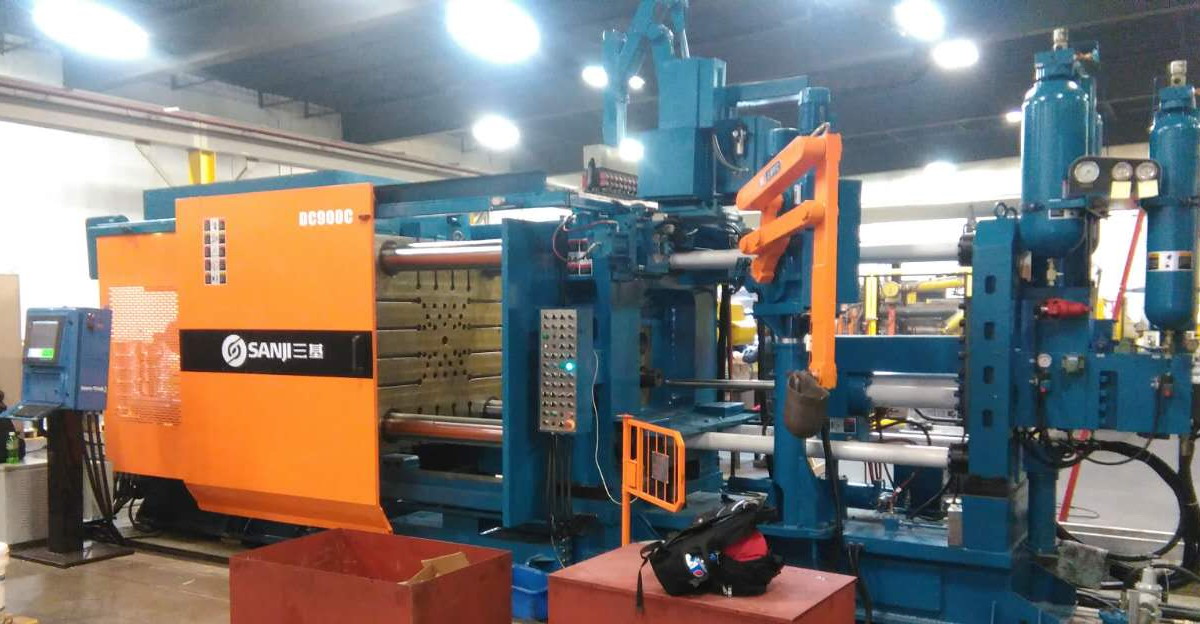 蘇州三基依照美國的UL認(rèn)證安全要求設(shè)計了歐美版臥式冷室壓鑄機(jī)系列產(chǎn)品,該產(chǎn)品在電氣控制系統(tǒng)、液壓油路、合模系統(tǒng)、機(jī)座系統(tǒng)等方面進(jìn)行了全新設(shè)計,合模機(jī)構(gòu)的模板、曲肘系統(tǒng)全部采用鑄鋼件,大大提高了壓鑄機(jī)的整體剛性。其中900噸臥式冷室壓鑄機(jī)已于2016年10月份成功銷往美國市場,該設(shè)備采用AB控制系統(tǒng)和美國VTW實時控制系統(tǒng),集成了給湯機(jī)、噴霧機(jī)、取件機(jī)器人、切邊機(jī)等自動化設(shè)備,組建了一個自動化壓鑄島,用于汽車零部件的自動化生產(chǎn)。設(shè)備目前正處于安裝調(diào)試階段,將在2017年2月份正是達(dá)產(chǎn)。